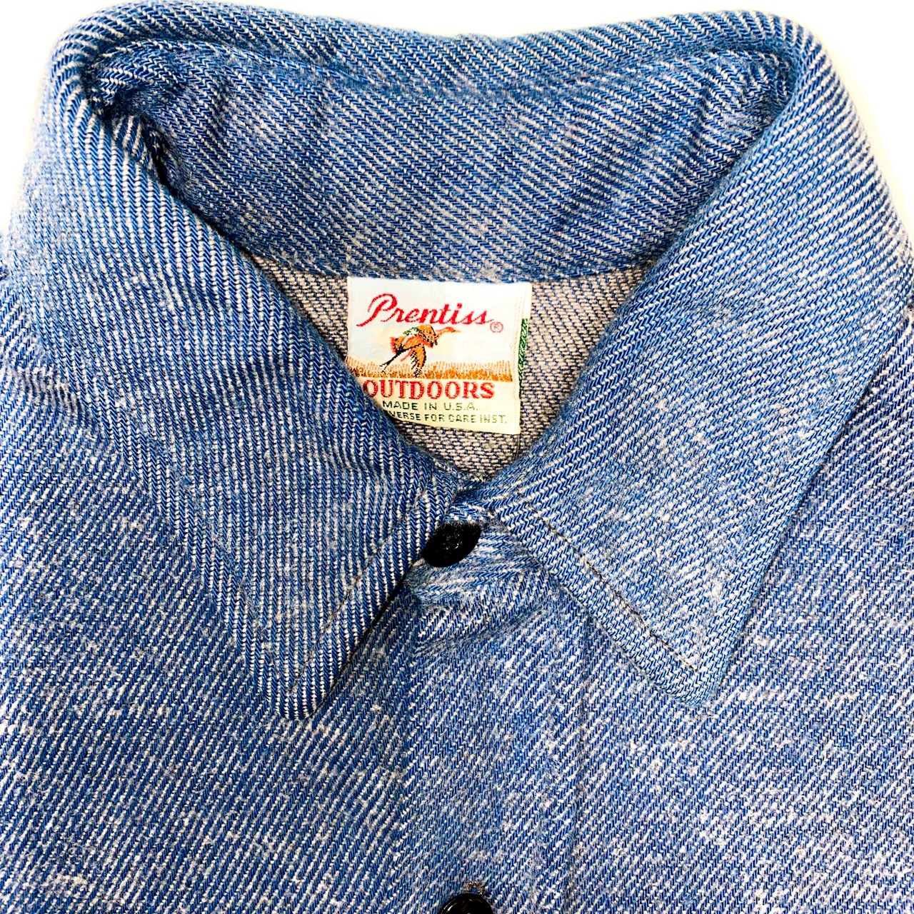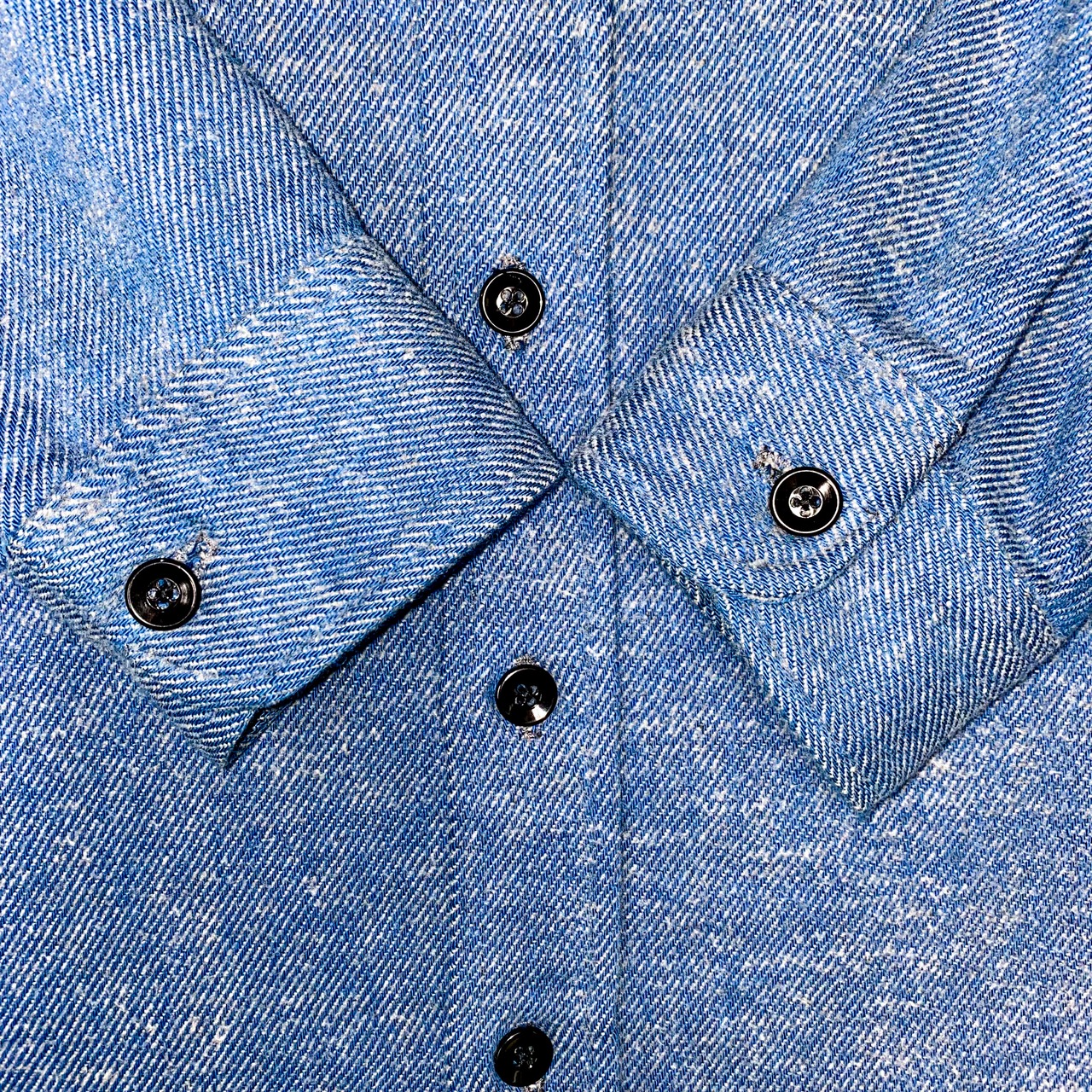フラップ付き襟芯ありのボタンも全てオリジナルで揃ってます。織り組織がデニムと一緒です。