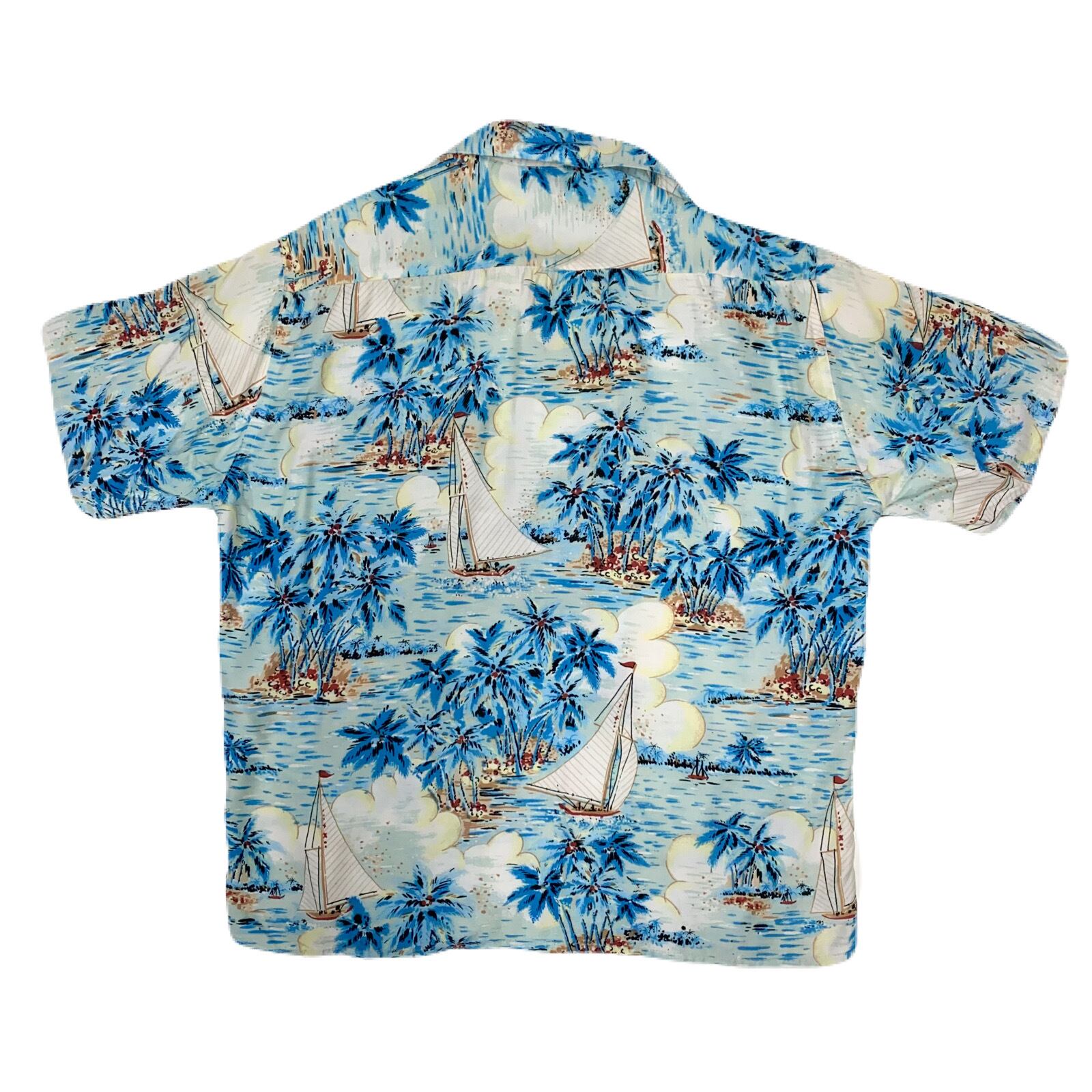 1960年代製パームツリー&ヨット柄アロハシャツです。